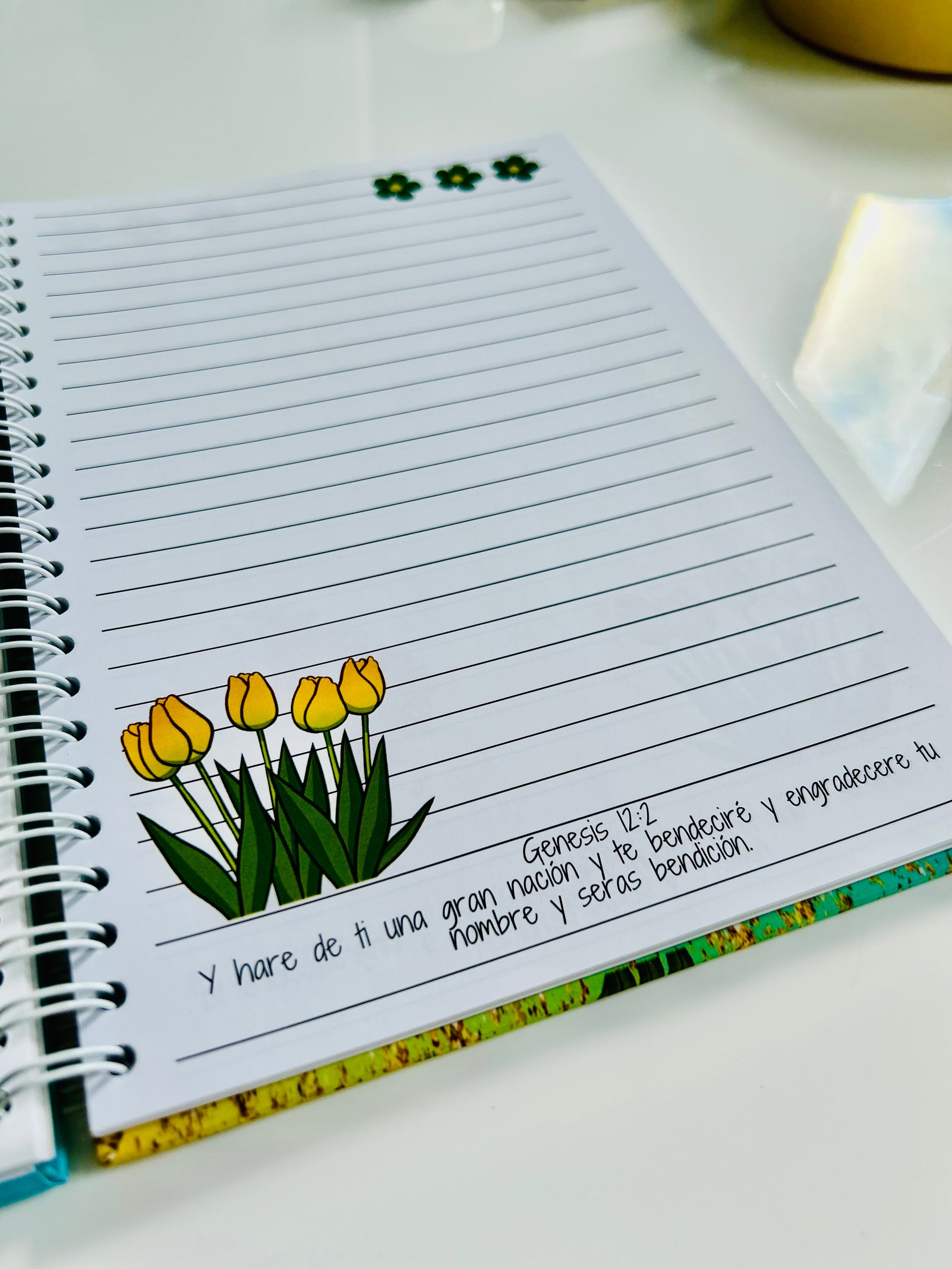 Osez vous épanouir avec notre carnet personnalisé "Resplendece y florece" au design printanier. Idéal pour les femmes souhaitant s'aventurer et grandir avec Dieu. Prenez des notes avec style et partez à la conquête de nouvelles opportunités ! Ne laissez pas cette saison vous passer entre les doigts !